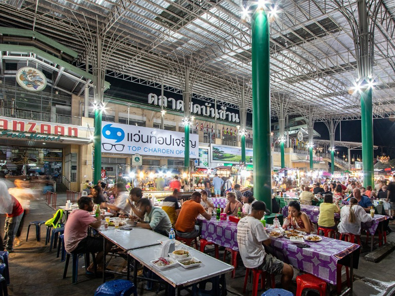 ตลาดสดบ้านซ้าน (Banzaan Market) ห้ามพลาดที่จะแชะภาพกับตึกสถาปัตยกรรมสไตล์โมเดิร์นผสมชิโนโปรตุกีส สูง 2 ชั้น ที่คุณเห็นแล้วต้องว๊าว ตลาดสดหาของง่ายได้ของเร็ว เพราะจัดระเบียบแผงแยกตามโซน แวะช้อปอาหาร เครื่องดื่ม สตรีทฟู้ดสุดอร่อย โซนตลาดสดจำหน่ายอาหารทะเล, ผักผลไม้, ขนมของฝากราคาประหยัด ที่เปิดตลอดทั้งวัน แนะนำโซนต่างๆ ในตลาดบันซ้าน